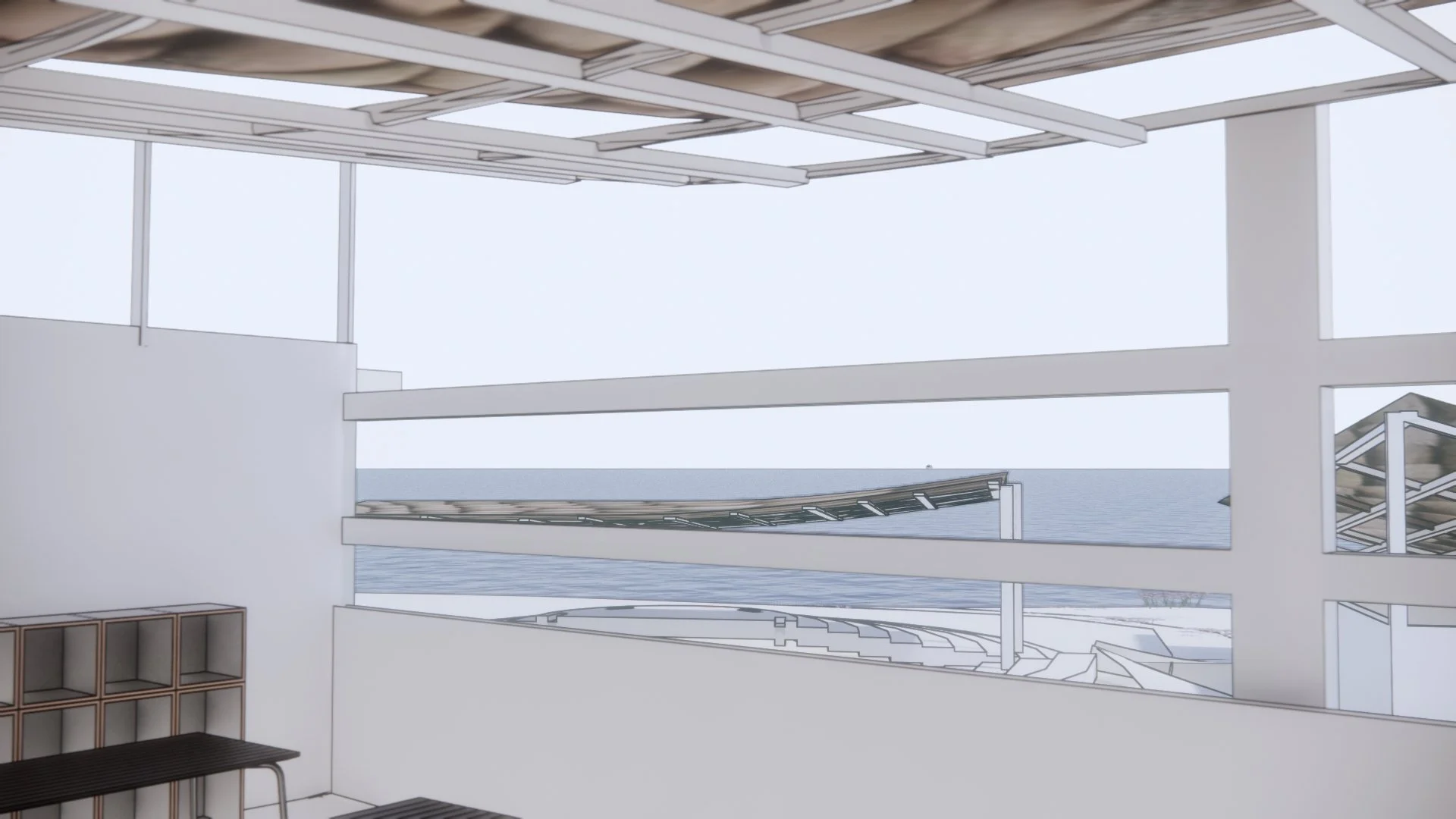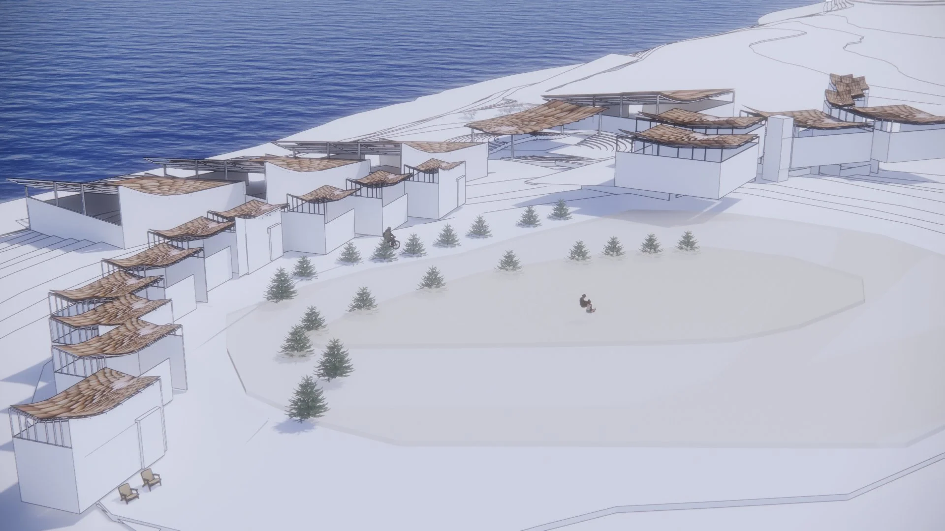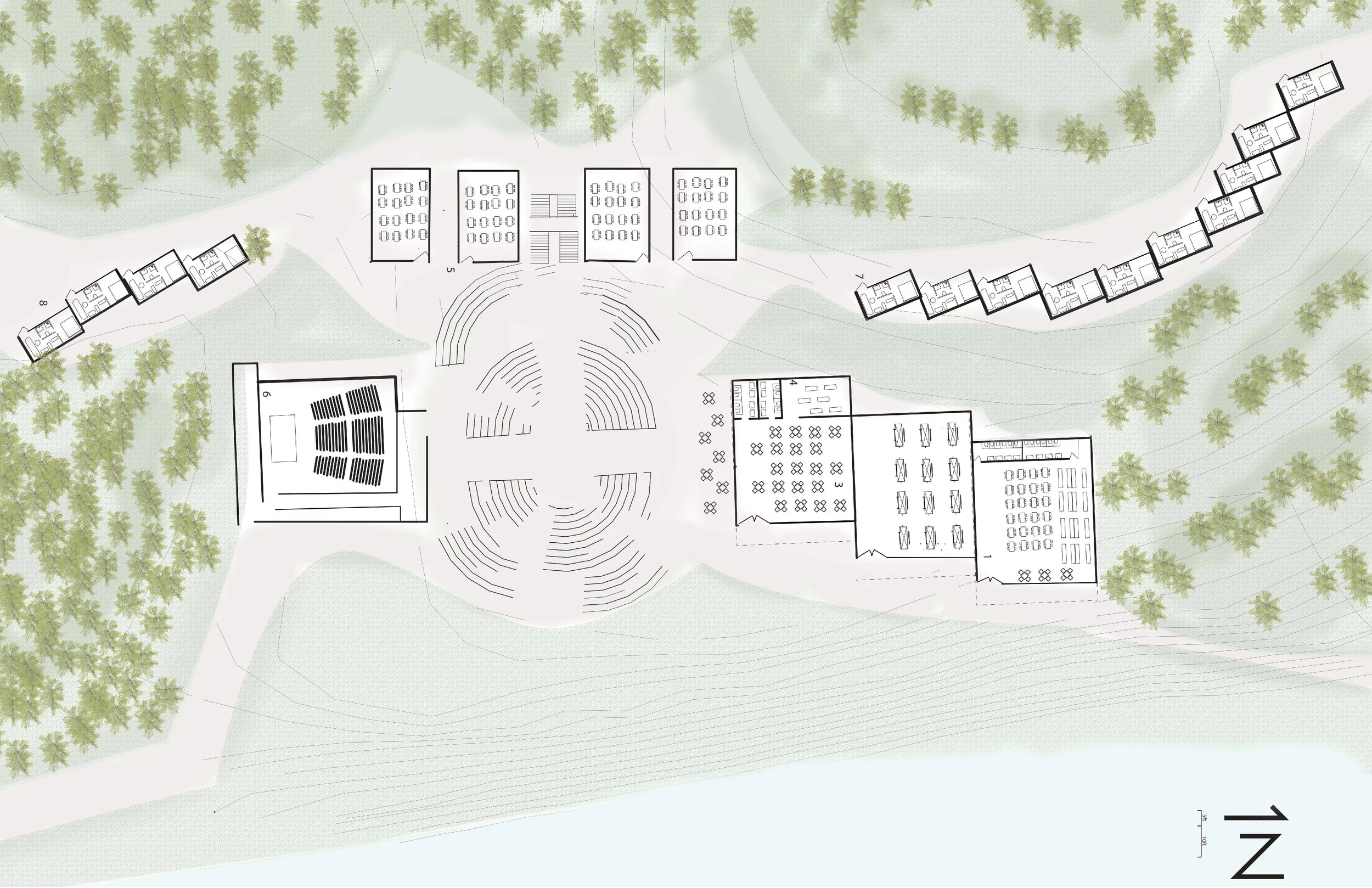The design takes careful consideration of wind direction, sun angle, and views into the water to make sure there is maximum comfort for the different types of spaces including residential dorms, classrooms, studios, dinning center, and library.